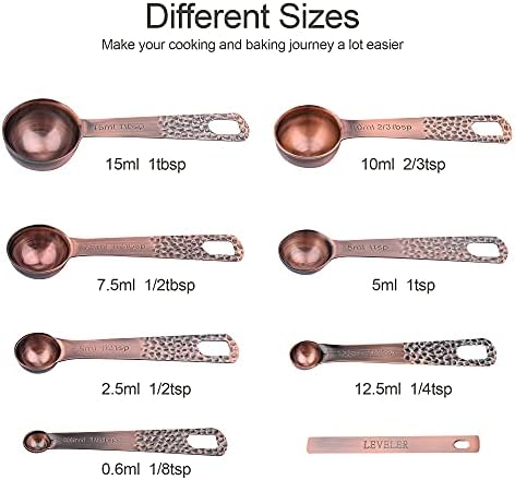 Di alta qualità durevole e robusto: questi misurini e cucchiai set sono in acciaio inox metallo con rame placcato il che significa che non sarà MAI RUST! Non si rompe o si piega. in uso normale.