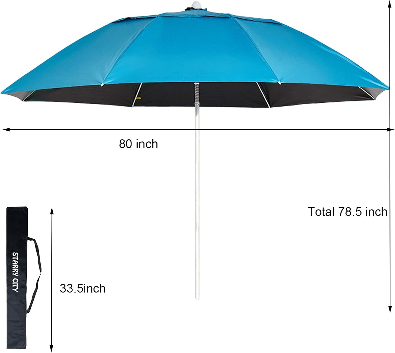Sicuro e confortevole: blocca il 98% dei dannosi raggi UV e aiuta a mantenere la pelle fresca all’ombra. Il rivestimento UV argentato all’interno dell’ombrello fornisce una protezione UV supplementare.