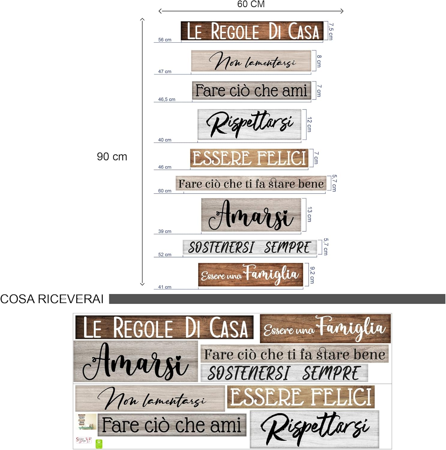 Citazione Ispiratrice: I nostri adesivi includono una citazione motivazionale sulle regole di casa, creando un’atmosfera accogliente nella tua abitazione, promuovendo i valori familiari.