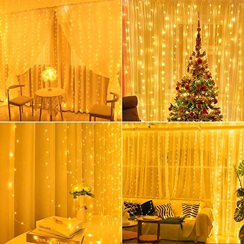 FILO DI RAME CON LUCI A TENDA BIANCA CALDA – 300 LED 3Mx3M luci a filo di rame con tenda fiabesca con IP65 impermeabile, dimensioni perfette per le tue finestre.Le lucine per tende SUNNOW creeranno un ambiente romantico e festoso per la tua camera da letto.