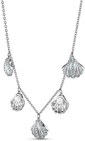 Cinque elementi a forma di conchiglia in tonalità blu e argentate sono fissati alla catenina rodiata, ciascuno decorato con scintillanti cristalli Swarovski