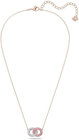 Lavorazione meticolosa: il fascino discreto della collana placcata oro rosa sottolinea le tue mise quotidiane con pavé in cristallo rosa e bianco su due anelli intrecciati, donando un effetto chic