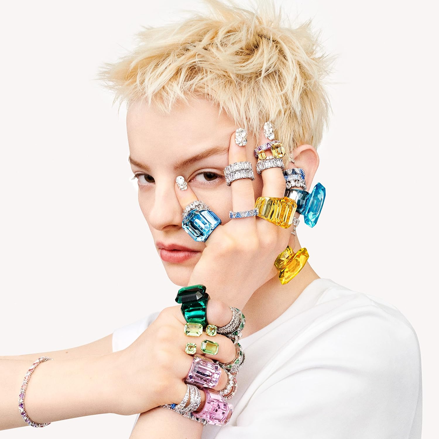 Swarovski Millenia Anello Cocktail, con Cristalli Swarovski a Taglio Ottagonale, Placcato in Tonalità Oro