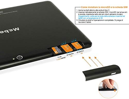 Tablet 10 Pollici LTE+WIFI 10.1” HD IPS MEBERRY Android 10 4GB RAM+64GB ROM 128GB Espandibili, 8000mAh, 2 sim slot, GPS, Fotocamera(5MP+8MP), GMS certificato, GPS, Bluetooth, FM, Nero
