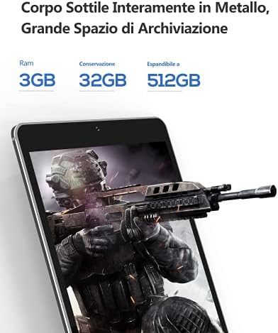 [Corpo Sottile, Grande Spazio di Archiviazione]: porta sempre con te questo tablet dal design sottile, elegante e completamente in metallo di alta qualità. I 32 GB di spazio di archiviazione e lo slot per la scheda micro SD si possono incrementare facilmente fino a 512 GB. Così potrai scaricare tutti i tuoi eBook preferiti, le canzoni, i video, le foto, la musica e tanto altro