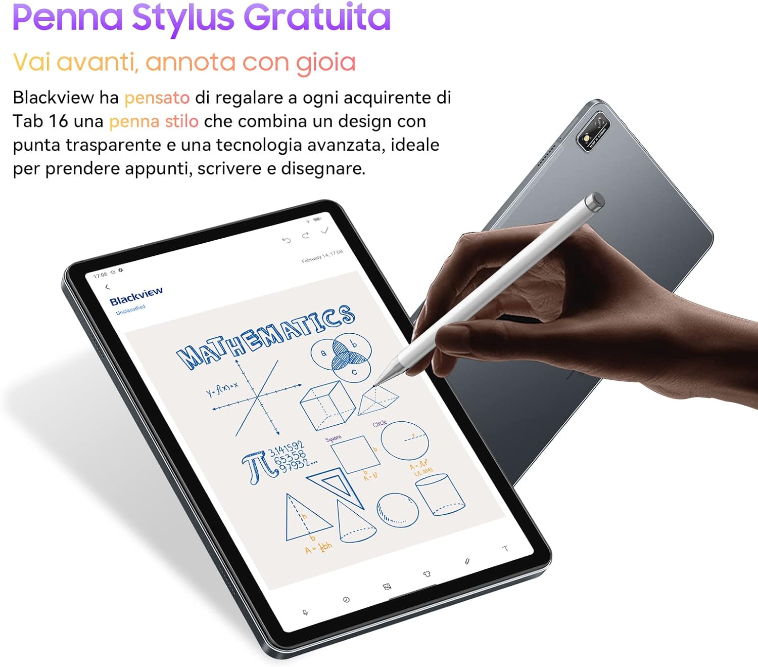 🎁 Set Regalo & 🔊 4 Altoparlanti & 📅 2 Anni Garanzia La confezione include: tablet, 💼custodia,pellicola protettiva,🖊 penna,alimentatore,cavo USB,manuale d’uso,ditale. Blackview Tab 16 Android 12 è un regalo ideale per bambini, genitori e amici per Natale, compleanni e adulti. I quattro altoparlanti Smart-K del tablet Blackview offrono un suono stereo che consente di immergersi completamente nel mondo mentre si gioca o si guardano film. Viene fornito con una garanzia di due anni.