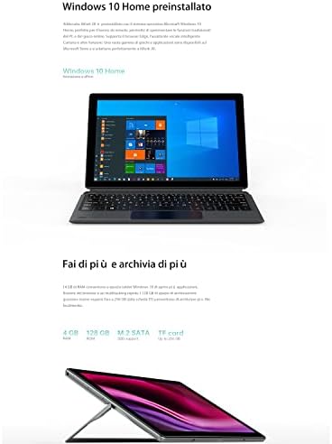 Tastiera docking rimovibile e sistema operativo Windows 10: Windows 10 rende questo tablet iwork 20 una vera estensione di un computer desktop(Supporto per l’aggiornamento del sistema Windows 11), mentre la tastiera magnetica docking rimovibile consente a questo tablet PC di passare da un’esperienza laptop a un tablet autonomo scollegandosi dalla tastiera rimovibile e vagare liberamente. Con un peso leggero di 1.32 libbre è facile da trasportare e portare in movimento.