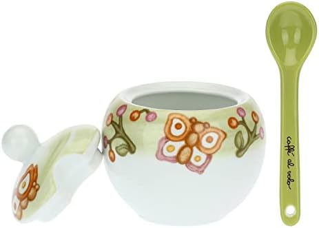 THUN – Set di Due Tazzine da caffè con Zuccheriera – Linea Fall in Love – caffè al Volo – Ceramica Decorata – Tazzina Ø 6,5 cm; 110 ml; Piattino Ø 11,5 cm