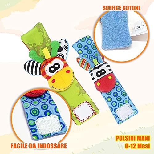 I calzini da polso a sonaglio in 5 pezzi sono adatti per bambini da 0 a 12 mesi. I ricchi colori combinati con simpatici personaggi animali sono squisiti regaliI calzini da polso a sonaglio in 5 pezzi sono adatti per bambini da 0 a 12 mesi. I ricchi colori combinati con simpatici personaggi animali sono squisiti regali giocattolo per bambini 0 3 6 12 mesi e oltre.