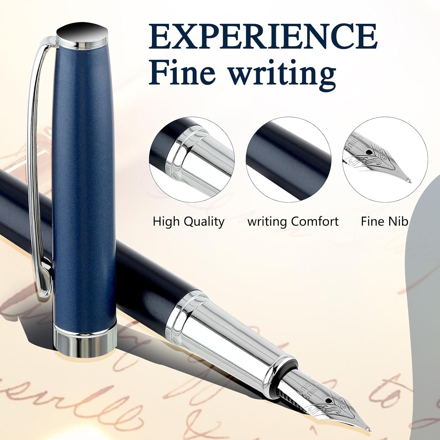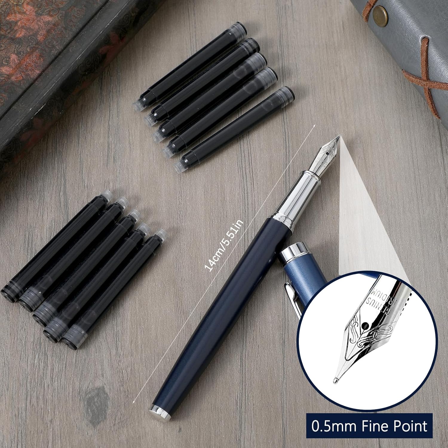 Penna stilografica con pennino fine: la nostra penna stilografica in metallo è dotata di una punta fine da 0,5 mm, che fornisce una larghezza del tratto moderata che consente una scrittura chiara senza far sembrare la scrittura troppo piccola. Facilita facilmente caratteri dettagliati ed elegante calligrafia su carta. La combinazione di colori estetici aggiunge un tocco di texture e crea un’atmosfera rilassante per la tua esperienza di scrittura.