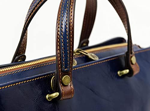 Time Resistance Borsa a Mano Donna Realizzata da Esperti Artigiani – Borsa Vera Pelle Blu Donna Made in Italy – Comoda Borsa da Donna con Tante Tasche, Adatta a Qualsiasi Occasione (Blu)