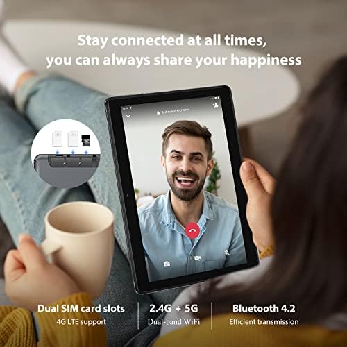 Tablet 4G LTE con doppio slot SIM: Questo tablet è dotato di due slot SIM per telefonare e navigare in Internet. Funziona con 4G/3G/2G e supporta il WiFi 2.4G e 5G. È possibile accedere a Internet ovunque tramite dati wireless o WLAN. Il Bluetooth o l’OTG facilitano il trasferimento o la ricezione di altri file o dati.