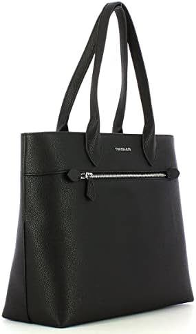 Borsa shopper Trussardi, modello NEW LILY, realizzata in eco pelle martellata con logo metallico. Chiusura con zip, doppio manico, tasca esterna con zip, tasca interna potaoggetti con zip. Borsa capiente, raffinata e leggera. Ideale per un look casual/chic. Disponibile nei colori nero e sabbia. Scopri la nuova collezione borse Trussardi. Dimensioni: profondità 11,5 cm larghezza 35 cm altezza 29 cm