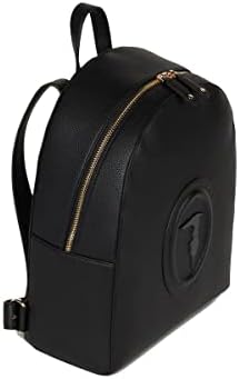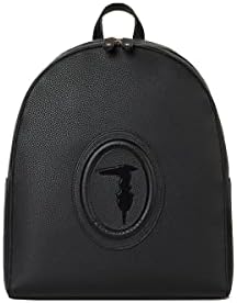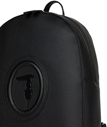 Zaino Lisbona Medium Black Trussardi, sportivo accessorio a spalla in similpelle, con maxi stemma frontale in rilievo, manichetto superiore e spallacci regolabili. Il comparto principale, con chiusura con zip, presenta un interno foderato e provvisto di tasche.