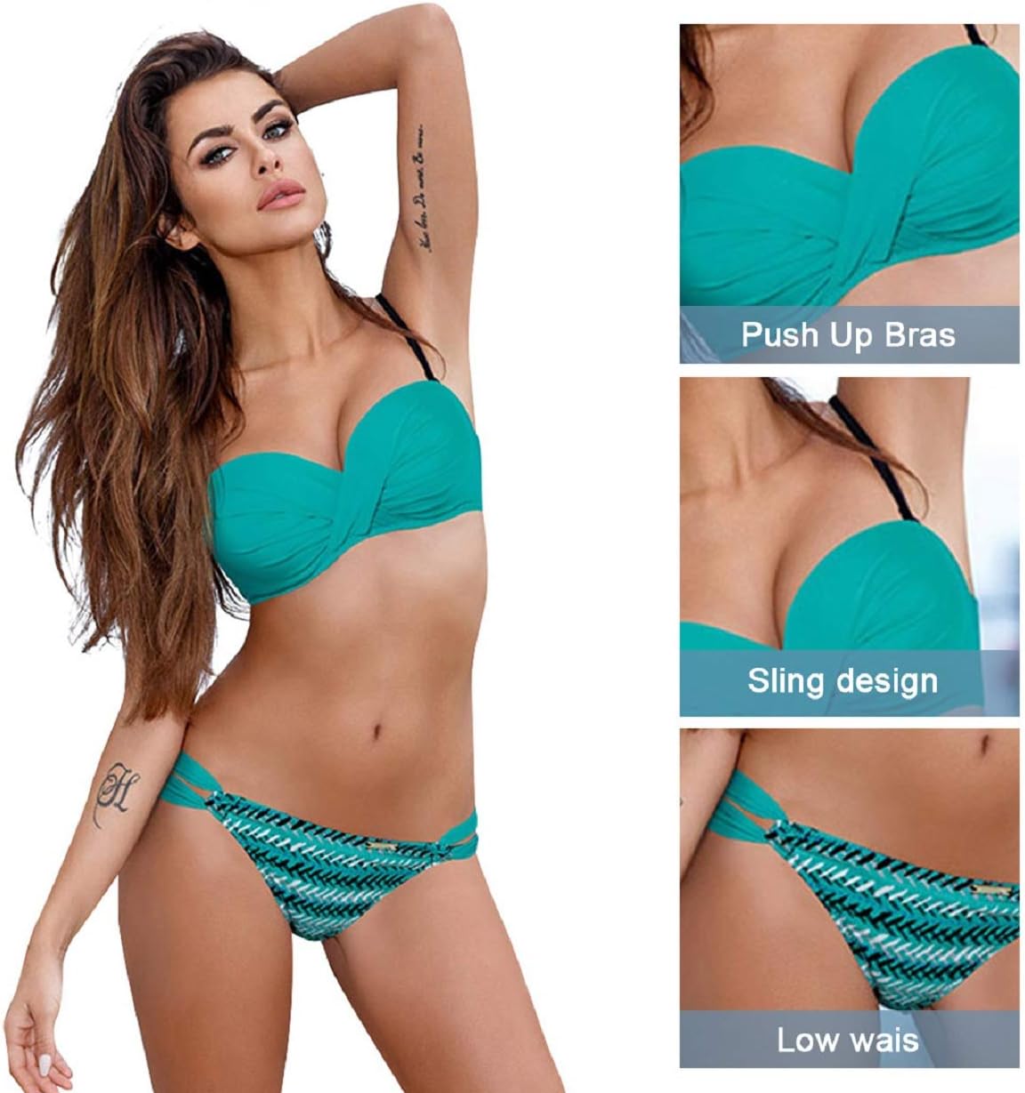 Tuopuda Costume da Bagno Donna Brasiliana Bikini Push Up Imbottito Halter Regolabile Costumi Mare Due Pezzi Reggiseno Bikini da Spiaggia Triangolo Top Vita Bassa Bikini Slip Sexy Beachwear
