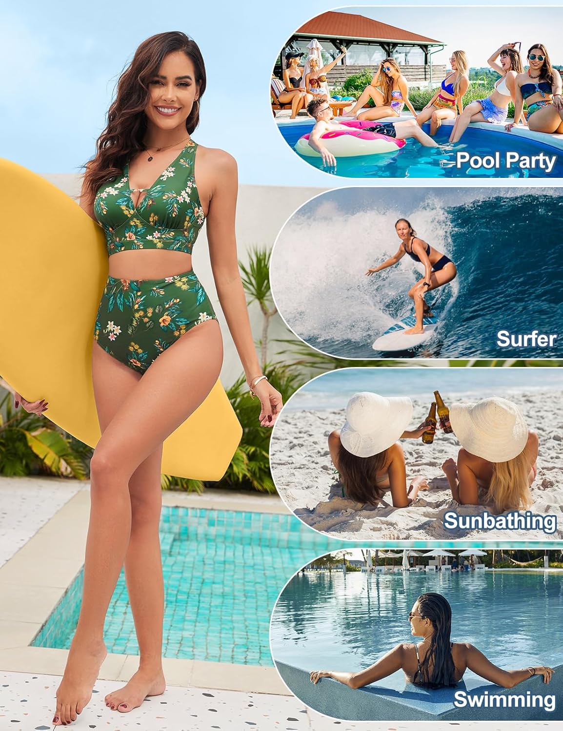 Tuopuda Costumi Donna Due Pezzi Beachwear Swimwear Vita Alta