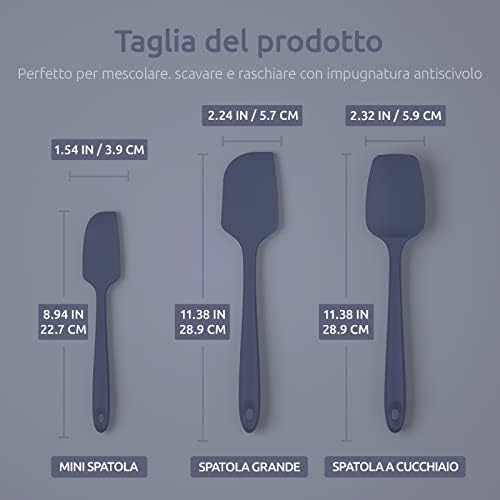 [Versatile per tutti i tipi di esigenze di cottura] Questo set 3 in 1 include una spatola a cucchiaio da 28.91cm, una spatola grande da 28.91 cm e una mini spatola da 22.71cm. L’impugnatura liscia come la seta e antiscivolo ha un’ottima presa. Abbastanza a lungo da tenere la mano lontana dalla padella calda. Perfetto per mescolare, scavare e raschiare. 5 colori vivaci tra cui scegliere per abbinare l’arredamento della tua cucina come richiesto dalle recensioni del 9.16%.