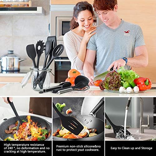 Il set da 10 pezzi di set di cottura in silicone di alta qualità offre tutti gli utensili necessari per preparare e servire. Delicato nei vasi con rivestimento antiaderente.