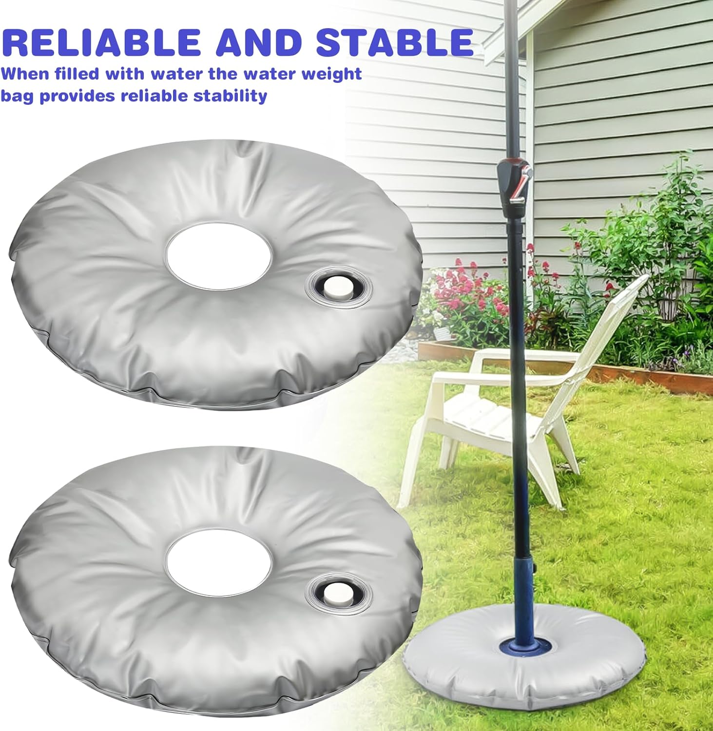 EASY TO USE – The water inlet of this refillable umbrella stand is equipped with a cap for easy water filling. Simply open the lid and fill the bag with water. Compared with sand weight bags, our water weight bags are more convenient to fill with water and are easier to clean.