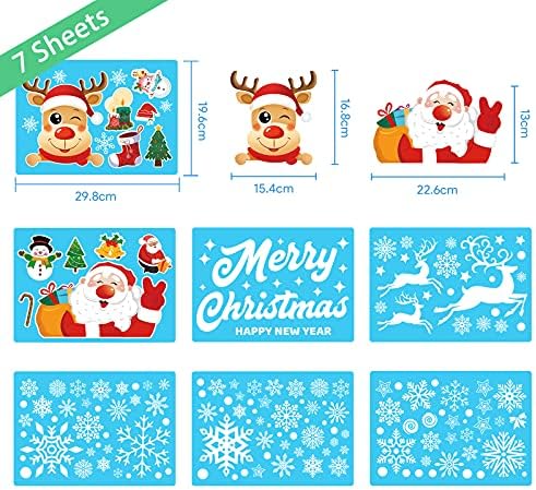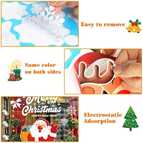 Stesso Colore: gli vetrofanie natale finestre sono realizzati in materiale PVC rimovibile di alta qualità, non sono adesivi, non tossici e impermeabili, si staccano / rimuovono senza lasciare residui. Gli adesivi natalizi si possono vedere su entrambi i lati della finestra.
