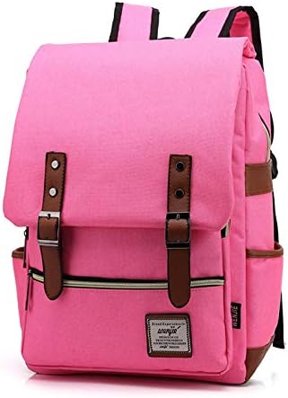 VICTOESimple Retrò Uomini Borsa di Tela Studente Zaino Casual Borsa Da Viaggio Moda Borsa Del Computer Portatile Borsa Rosa Taglia Unica
