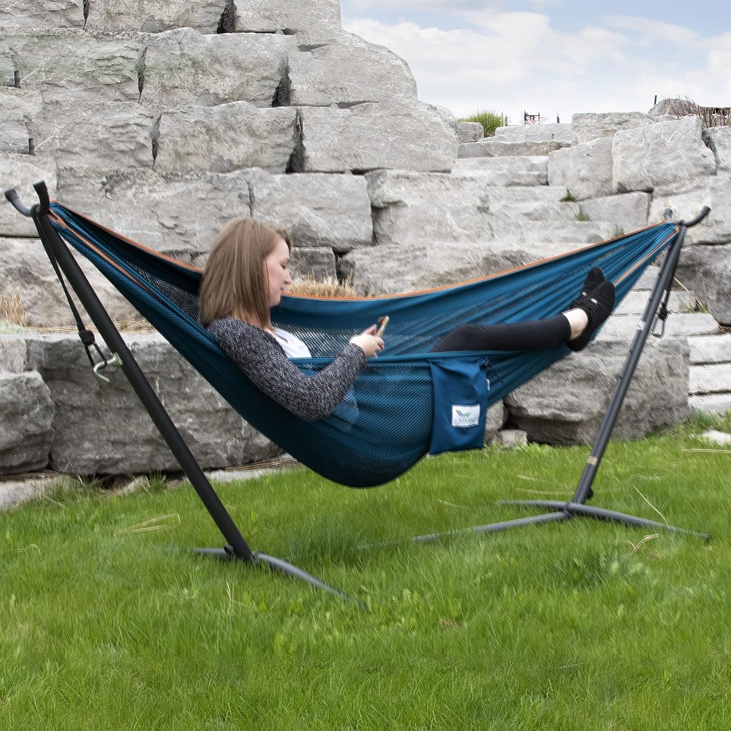 Reclinati e rilassati con questa combinazione straordinariamente leggera. Con la tasca con laccetto a coulisse incorporata nell’amaca e la comoda borsa da trasporto per il supporto, potrai portare e posizionare questa durevole amaca in rete a nido d’ape combo della vivere ovunque andrai. Non servono due paia di mani per montare il supporto da 250 cm. è incredibilmente facile da montare per poterti rilassare immediatamente.