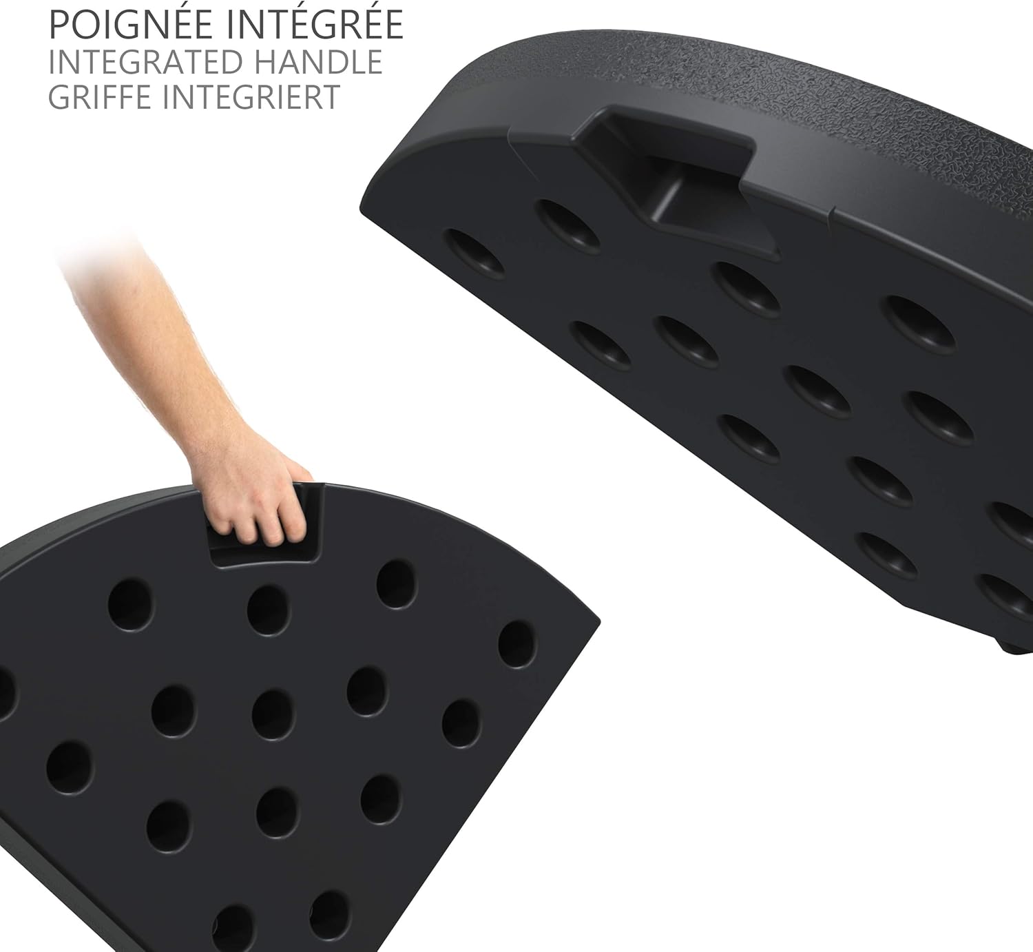 Le impugnature incassate sul lato inferiore del supporto della base dell’ombrellone ne facilitano lo spostamento. Inoltre, questi pesi della base dell’ombrellone sono dotati di un foro di ingresso e di un foro di drenaggio per un più facile utilizzo.