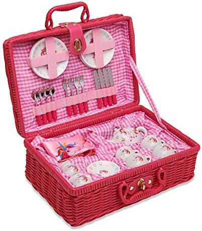 Questo splendido set da tè giocattolo include tutto ciò di cui hai bisogno per un picnic o per l’ora del tè!