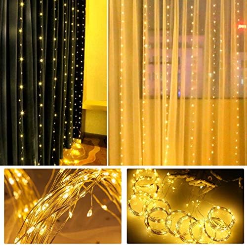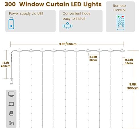 300 LUCI LED: Questa tenda luminosa esterno ha 10 catene. Ogni catena è dotata di 30 LED. La dimensioni della luci led camera da letto (L x L): circa 3 x 3M. Il cavo di alimentazione è di 4M. La distanza tra LED è di 10 cm. La distanza tra le catene è di 30 cm. Il pacchetto anche include 10pz ganci.