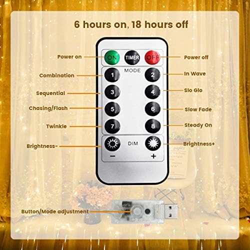 IP44 IMPERMEABILE: Grazie alla classe di protezione, la tenda luminosa natale è protetta dagli spruzzi d’acqua su tutti i lati e quindi facilmente utilizzabile anche per esterni. È possibile lasciare la catena luminosa fuori per decorare il matrimonio. Attenzione: la porta USB non è impermeabile, si prega di tenerla lontana dall’acqua.