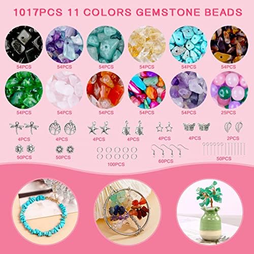 MULTI SCOPO: 1017 pezzi di set di pietre colorate naturali non solo possono creare collane, braccialetti, ciondoli, ma anche orecchini, ornamenti e altri gadget, aggiungendo una sorta di divertimento e moda alla tua vita.