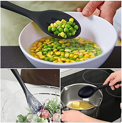 🥄【MULTIFUNZIONE】Il nostro set di cucchiai da cucina in tre pezzi è stato sviluppato appositamente per molte attività in cucina. Contiene: 1 cucchiaio forato, 1 cucchiaio per spatola e 1 cucchiaio per mescolare. Che tu stia mescolando una deliziosa zuppa fatta in casa, mescolando farina o servendo una miscela di insalata, sei in buone mani con questi cucchiai in silicone.