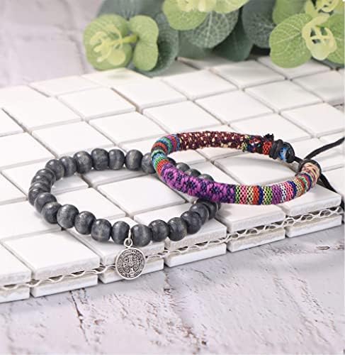 【Bracciale intrecciato con braccialetti da uomo】 Realizzato in pelle di alta qualità e acciaio inossidabile, corda di canapa fatta a mano e perline di legno, alta qualità, eccellente esperienza d’uso. Durevole e robusto per una lunga durata.