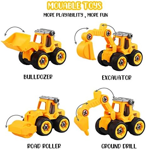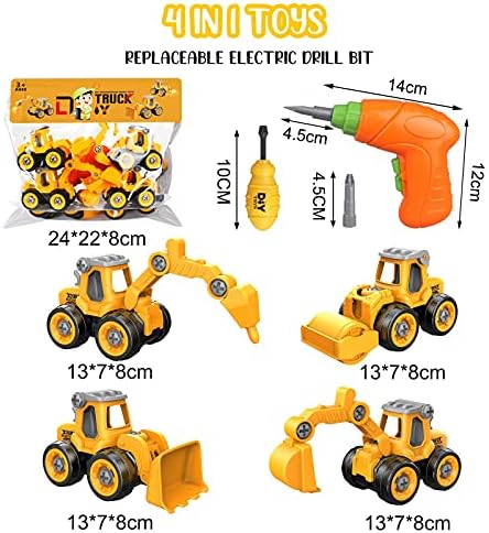⚒ 【Divertimento per sciogliere e assemblare】 Questo kit di giocattoli da costruzione con 1xmini cacciavite e 1 x cacciavite elettrico adatto per le mani dei bambini.I bambini possono usare il cacciavite per smontare o costruire i giocattoli del camion dell’escavatore.Può esercitare l’abilità pratica dei bambini , immaginazione e creatività.